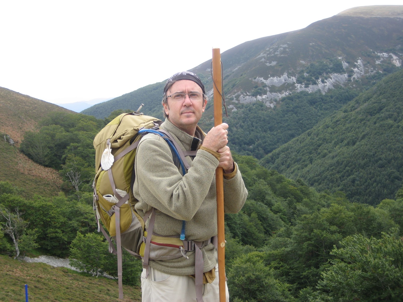 Today was a steady climb up to almost 2000 meters across16 km, then a treacherous downhill slide at the end descending to the Abbey at Roncevalles, where 200 other pilgrims were already milling about trying to get bunks. Roncevalles is the traditional starting point in Spain for El Camino de Santiago.